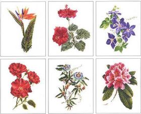 Strelitzia, Hibiscus, Clematis, Rose, Passiflora and Rhododendron.