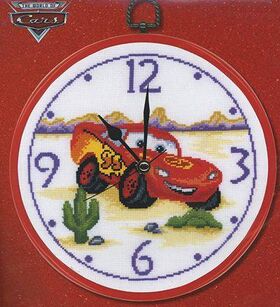 В набор входит: часовой механизм, канва, мулине, схема и круглая пластиковая рамка.