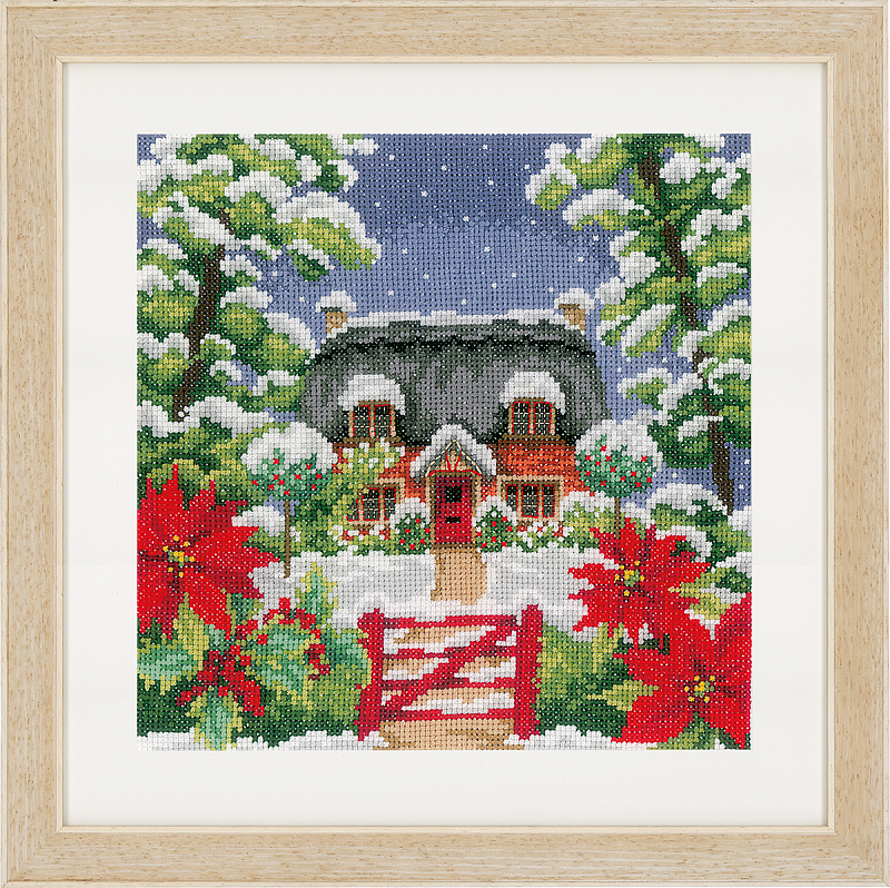 В набор входит: аида 14 белая, нити для вышивания, игла, черно-белая символьная схема, инструкция.