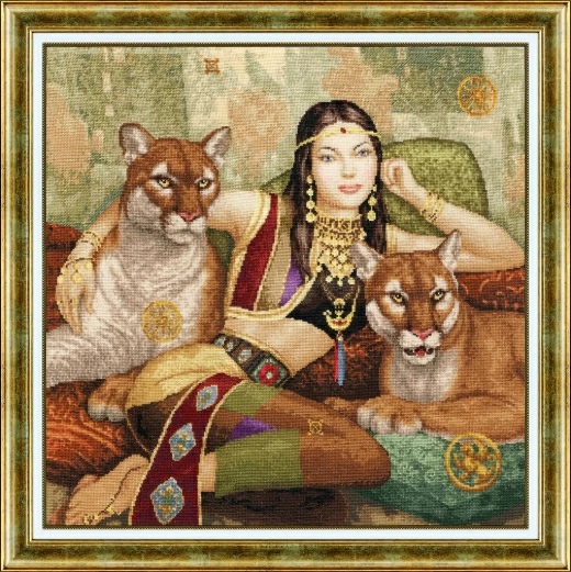 В наборе: канва №18 Aida Zweigart кремовая, нитки мулине Madeira (Германия) 76 цв., игла и символьная схема.