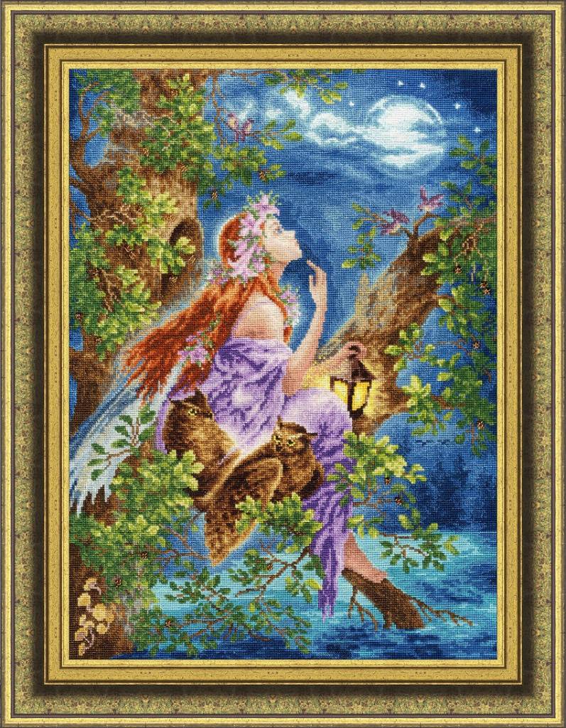 Вышивается крестом в 2 нити и в 4 нити с добавлением светящихся ниток