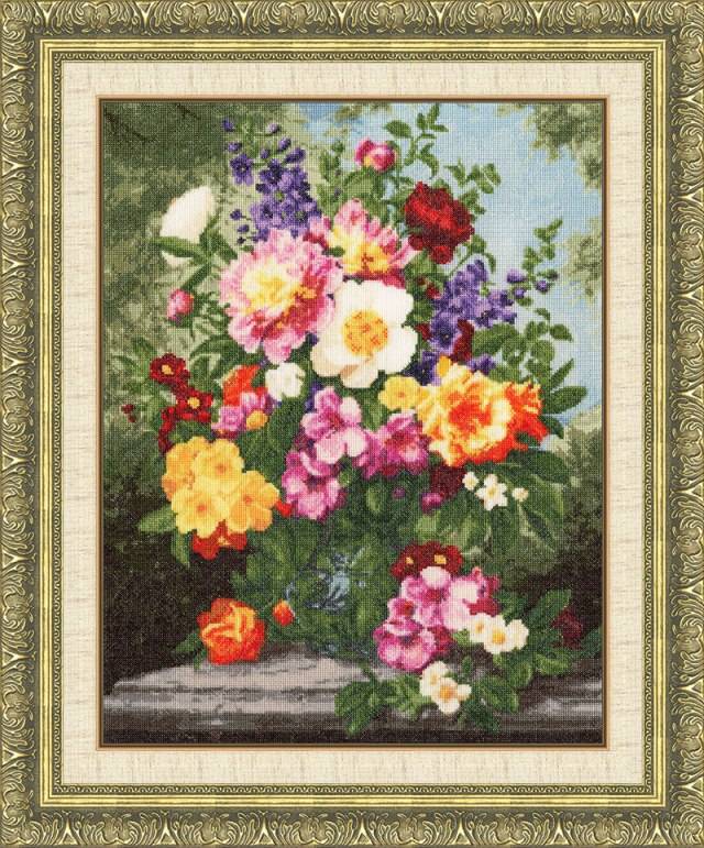 В наборе: аида кремовая 18, хлопковое мулине Madeira (65 цв.), игла и символьная схема.