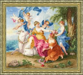 В наборе: канва Аида 18 кремовая, нитки мулине Madeira (Германия) 111 цв., игла и символьная схема.