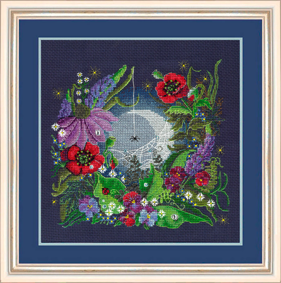 В наборе: Канва № 16 Aida Zweigart тёмно-синяя (без нанесенного рисунка), нитки мулине DMC (Франция), нитки мулине Gamma (Россия), стразы, игла, схема для вышивания. Частичная зашивка нитками.