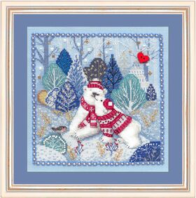 В наборе: Канва № 16 Aida Zweigart светло-голубая (без нанесенного рисунка), нитки мулине DMC (Франция) 22 цв., Gamma (Россия), декор, игла, схема для вышивания. Частичная зашивка нитками.