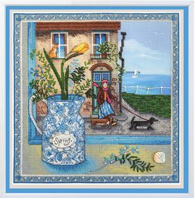 В наборе: канва № 18 Aida Gamma с дизайнерским принтом от Zolotie ruchky (Россия), мулине Gamma 35 цв. (Россия), мулине Cloud для начёсывания и создания объёма деталей вышивки, нить DMC PERLE (Франция), металлизированная нить (серебристая), непрозрачный яркий бисер, кристально-прозрачный бисер с цветным отверстием, винтажная бирочка ручной работы производства Zolotie ruchky, декоративная пуговичка ручной работы производства Zolotie ruchky в виде ракушки, игла для ниток, игла для бисера, лента-липучка для начёсывания мулине Cloud, крупная схема для вышивания с цветным back stitch, QR-код для скачивания электронной схемы в формате SAGA.
