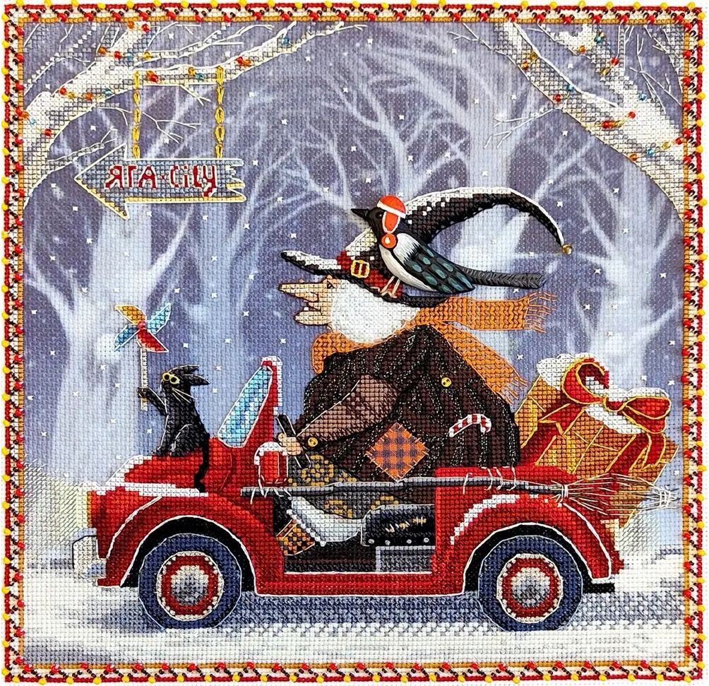 В наборе: канва No18 Aida «Gamma» (Россия) с дизайнерским принтом от компании «Zolotie ruchky»; мулине «Gamma» (Россия); мулине «DMC»(Франция); мулине «Cloud» (Россия) для начёсывания и создания объёма деталей вышивки; металлизированные золотистые, серебристые нити; меланжевая нить; люминесцентные нити; бисер «Preciosa» (Чехия); ювелирный бисер «Preciosa» (Чехия); декоративная пуговичка ручной работы в виде сороки производства компании «Zolotie ruchky»; декоративные золотистые пуговички; пряжка для декора; золотистая и малиновая бусины; тканевая заплатка; переливающиеся мини пайетки; лента-липучка для начёсывания мулине «Cloud»; игла для ниток; игла для ювелирного бисера; крупная черно-белая символьная схема для вышивания с цветным back stitch; QR-код для скачивания электронной схемы в формате SAGA; QR-коды:инструкция по вышиванию, декорированию ,социальные сети, сайт. Частичная зашивка.