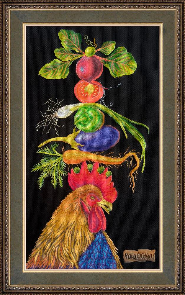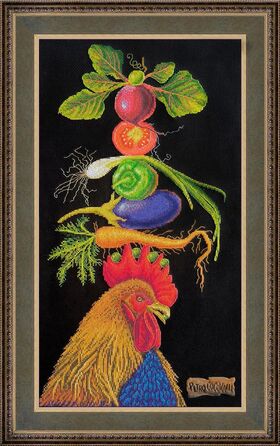 В наборе: канва №16 Aida «Gamma» (Россия) черного цвета, без нанесённого рисунка; мулине «Gamma» (Россия); мулине «DMC» (Франция); металлизированные нити голубого и синего цвета; декоративная бирочка с имитацией деревянной поверхности производства компании «Zolotie ruchky»; игла для ниток; крупная черно-белая символьная схема для вышивания с цветным back stitch; QR-код для скачивания электронной схемы в формате SAGA; QR-коды: инструкция по вышиванию, социальные сети, сайт.