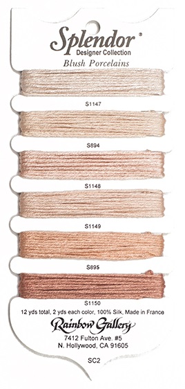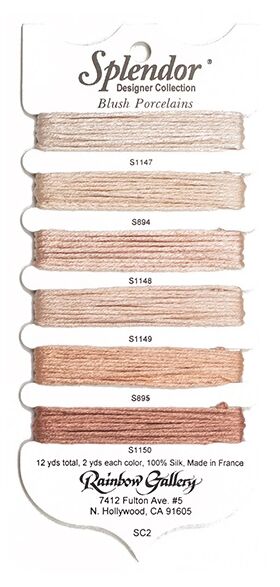 1,8 м каждого цвета в 12 сложений: S1147, S894, S1148, S1149, S895 и S1150. 100% шёлк. Сделано во Франции.