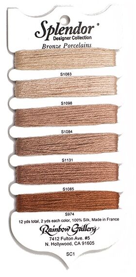 1,8 м каждого цвета в 12 сложений: S1083, S1098, S1084, S1131, S1085 и S974. 100% шёлк. Сделано во Франции.
