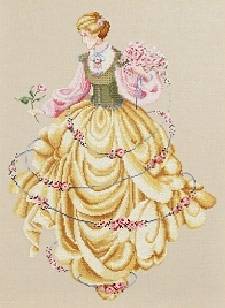 Символьная схема. В ключе к схеме указаны номера мулине DMC: 151, 159, 160, 161, 422(2), 434, 676(2), 677(2), 729, 746(3), 801, 819, 3350, 3362, 3363, 3364, 3731, 3733, 3828, 3829